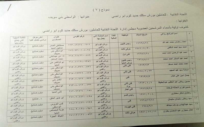 كانت لجنة تلقى طلبات الترشيح لانتخابات اللجان النقابية ببني سويف أعلنت إغلاق باب الترشيح بإجمالي 281 مرشحًا قدموا أوراقهم لخوض الانتخابات النقابية العمالية بالمحافظة.