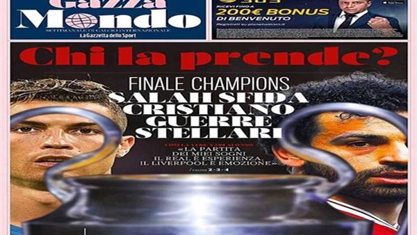 وتواجد بجوار صلاح، النجم البرتغالي كريستيانو رونالدو، ويتوسطهما درع البطولة حيث عنونت الصحيفة "من يحسم اللقب" وتابعت صلاح يتحدي كريستيانو للفوز بدوري أبطال أوروبا.
