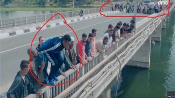 وفي مشهد لـ"زين القناوي" أثناء قفزه من فوق الكوبري في المياه، ظهر عدد من المواطنين يقفون على الكوبري وهناك من يمنعهم من العبور.
