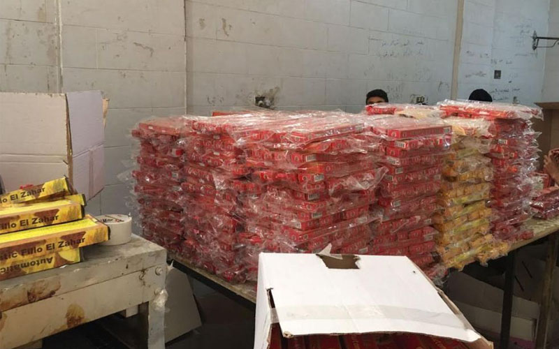 كانت قد وردت معلومات لضباط إدارة شرطة التموين والتجارة مفادها أن «محمود ا» 36 سنة مسؤول عن مصنع للصناعات الغذائية كائن شارع الصفا والمروة تقسيم مكة دائرة قسم شرطة السلام أول يدير المصنع بدون ترخيص ويحوز كميات كبيرة من المواد الغذائية مجهولة المصدر بداخل المصنع بقصد التصرف فيها بالبيع بالسوق السوداء لتحقيق أرباح غير مشروعة.