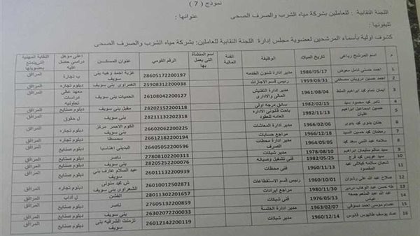 نتيجة انتخابات النقابة العمالية بشركة مياه بني سويف