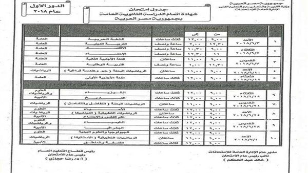 بمناسبة اقتراب موسم امتحانات الثانوية العامة والتي سيبدأ أول أيامه في الثالث من يونيو حيث بدأ الاستعداد على قدم وساق لتأمين اللجان الخاصة بها على مستوى محافظات الجمهورية روزاليوسف الجدول النهائي لامتحانات الثانوية العامة مع تمنياتنا لجميع الطلاب بالتوفيق والنجاح .