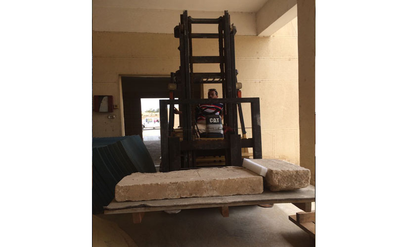 ومن أهم القطع التي استقبلها المتحف قطعة حجرية منقوشة من الوجهين يبلغ حجمها ٦٢x٣١x٨٥سم حيث يصور الجزء العلوي من الوجه الأول لها شخص يتعبد للإله حفر فوقة ١٢ سطرًا باللغة الهيروغليفية.