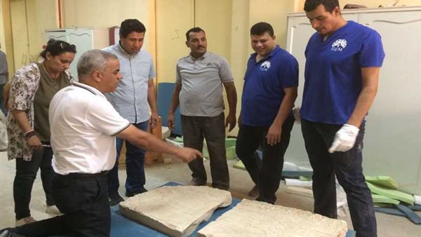 وأضاف عيسي زيدان مدير عام الترميم الأولى ونقل الآثار بالمتحف، أن القطع المنقولة تضم أيضا العديد من القطع المنقوشة بالنقش الغائر عليها بقايا ألوان، من بينها قطعة حجرية تصور منظر لأحد الآلهة وهو جالس على كرسي وأسفله شخص وزوجته جالسين على كرسي، يرتدى الرجل قلادة على شكل قلب والسيدة تمسك بيدها زهرة اللوتس، ويبلغ حجم القطعة ١١٧*٦٤*١٢سم.