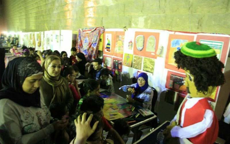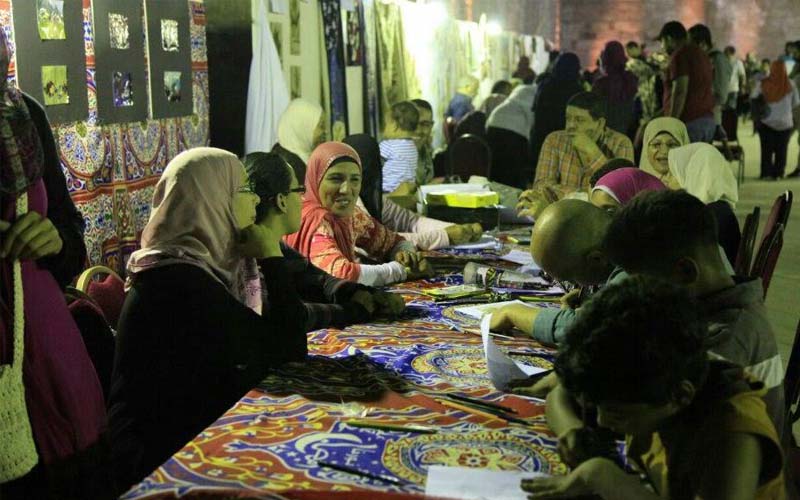 بجانب ورش فنية لذوي الاحتياجات الخاصة لتصنيع الحلي والطبع على القماش وتم تنفيذ جدارية عن الحارة المصرية في رمضان.