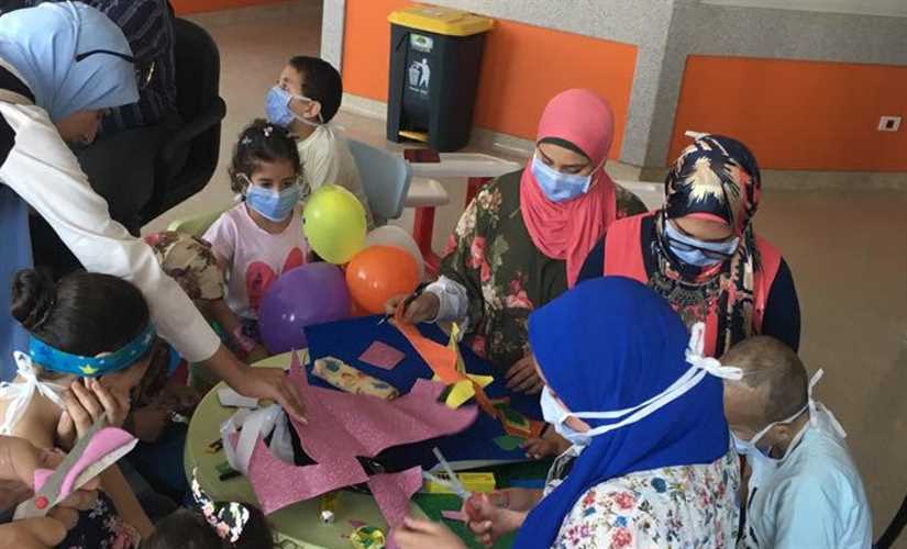 ومن جانبها أشارت الدكتورة "أمل أبو زيد" إلى أنه تم تنفيذ العديد من ورش العمل بالمشاركة مع أطفال المستشفى فى القسم الخاص بالعلاج الكيمياوى، كنوعاً من الترفيه عن الاطفال المرضي، حيث تم عمل فوانيس رمضان بخامات القماش والخشب، والعديد من الاكسسورات من الخيوط والخرز، كما تم تزيين غرف تلقى العلاج للأطفال بزينات مبهجة مساهمة فى ادخال السعادة عليهم، كما تخلل تلك الورش مجموعة من الألعاب الترفيهية والترويحية للأطفال.