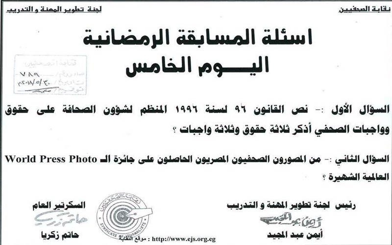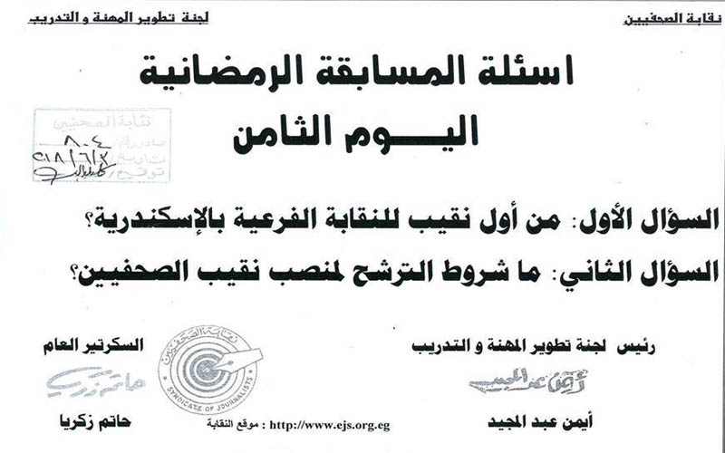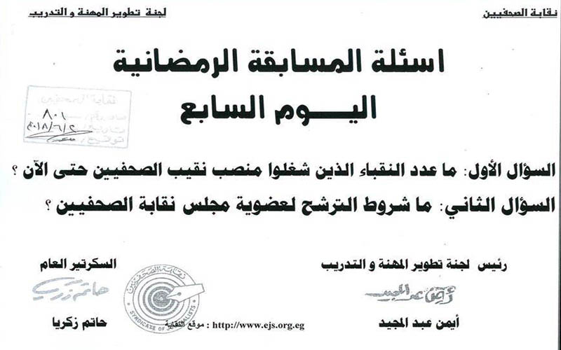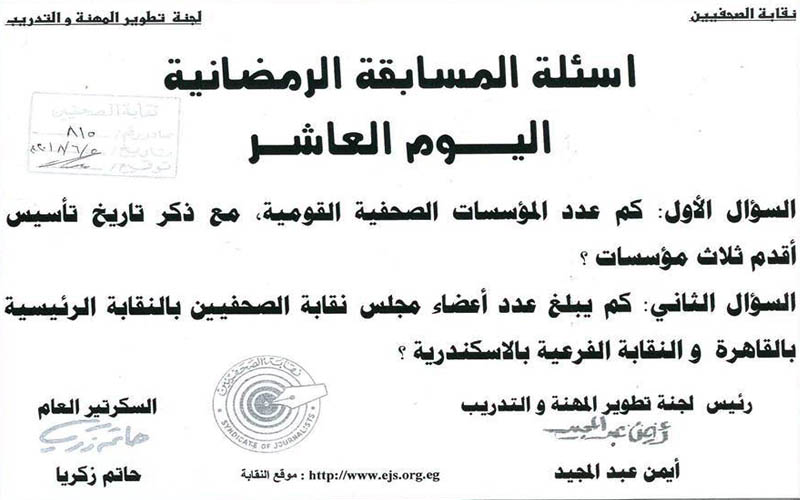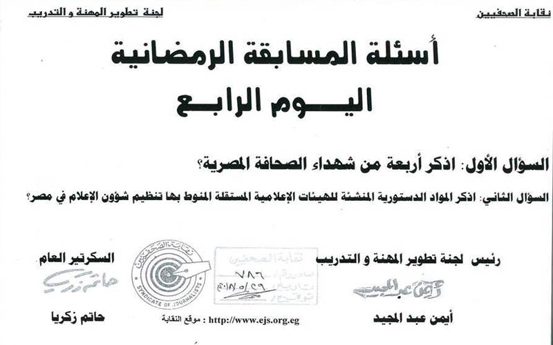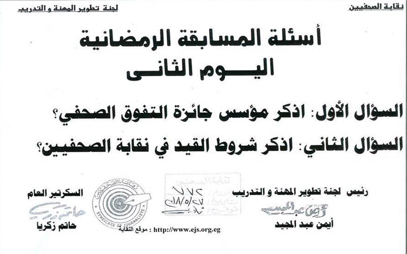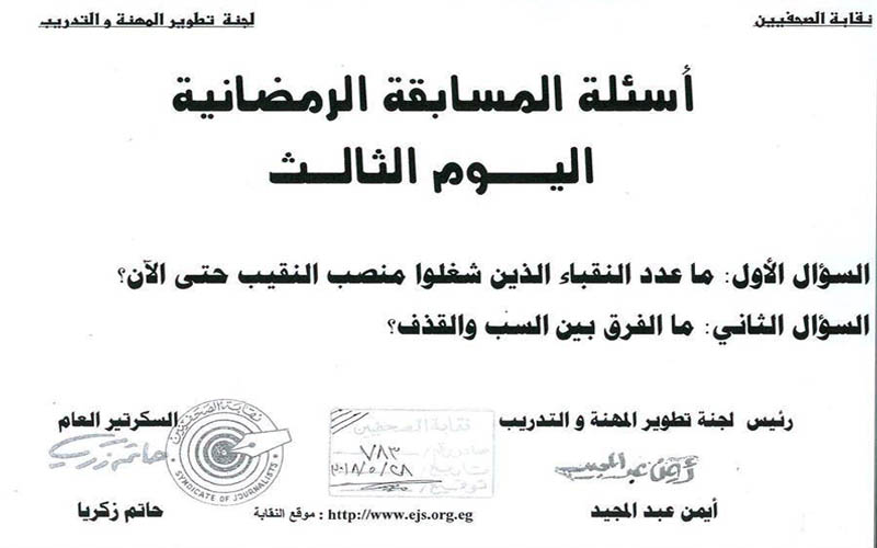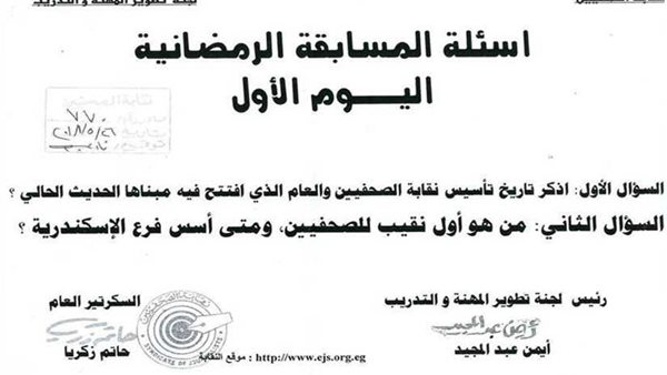 تعرف على أسئلة "مسابقة الصحفيين".. وآخر موعد لتسليم الإجابات