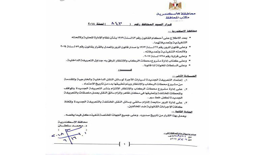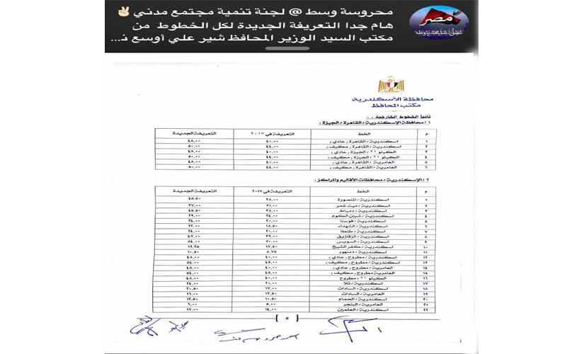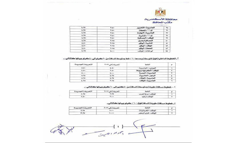 بالصور.. التعريفة الجديدة لأسعار المواصلات بالإسكندرية