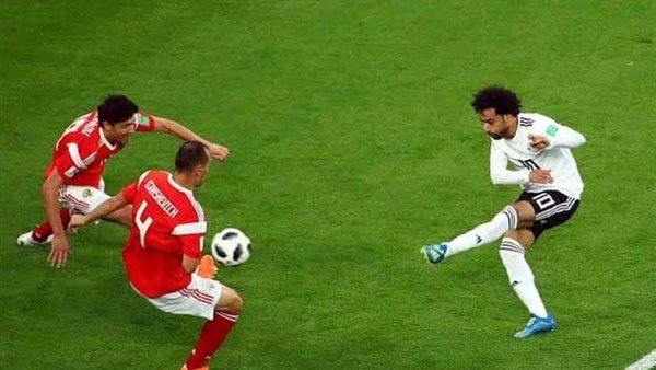 المنتخب المصري سرعان ما استعاد سيطرته بأداء بطولي اسفرر عن الوصول لمرمى الدب الروسي في كرات عدة وهجمات منظمة غير أن الحظ لم يحالفه، حتى حاول صلاح إحراز هدف فكان أن تعامل معه دفاع روسيا بعنف فحصل المنتخب المصري على ضربة جزاء.
