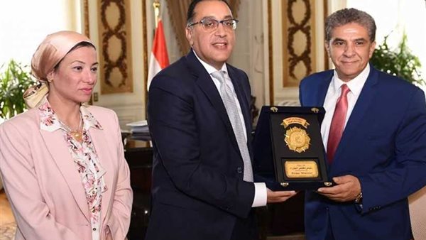 رئيس الوزراء يهدي درع مجلس الوزراء لوزير البيئة