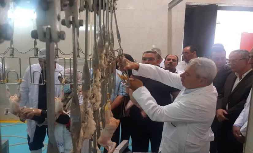 كما تفقد المحافظ، مراحل عمل المجزر والتي تبدأ بالتعليق ثم الذبح ونزع الأحشاء وغسيل الدجاج والتعبئة والتجميد.