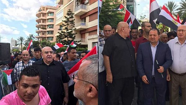 ورفع المحتفلون الأعلام المصرية، هاتفين تحيا مصر، أمام السفارة المصرية بلبنان.