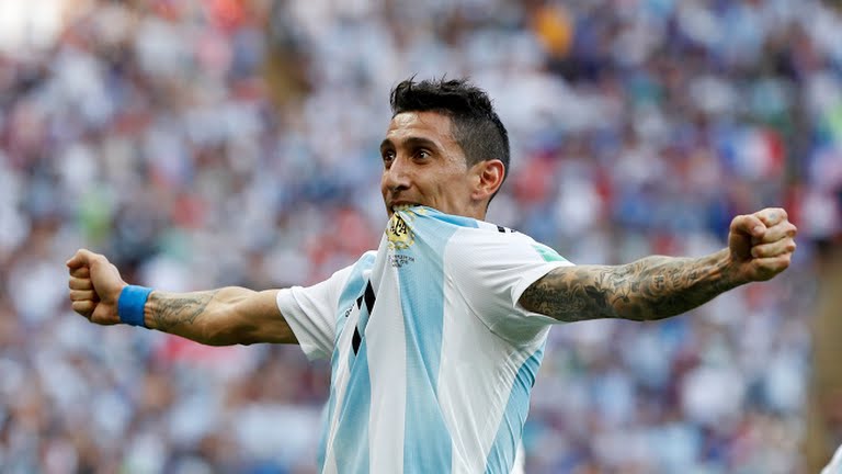 وقبل انتهاء الشوط الأول ترجم المنتخب الأرجنتين سيطرته على وسط الملعب وسدد أنخيل دي ماريا كرة بقوة من خارج منطقة جزاء منتخب فرنسا لتسكن شباكهم وينتهي بالتعادل 1/1.