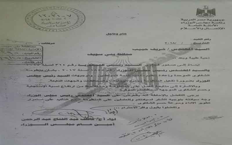 مجلس الوزراء يشيد بخدمة المواطنين ببني سويف