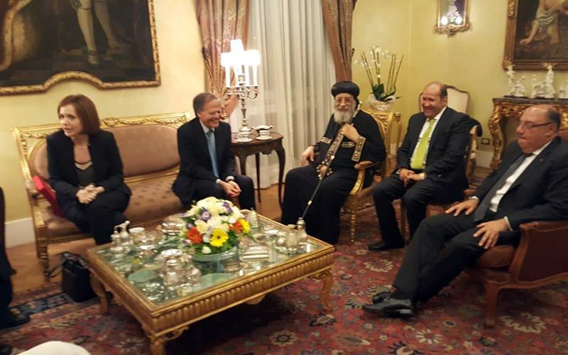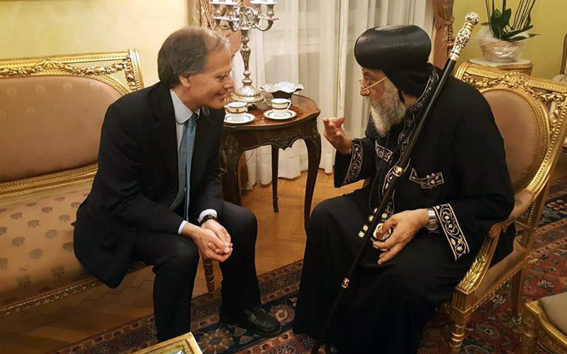 وقال موجهًا كلامه لقداسة البابا: لا شك أن دوركم يا قداسة البابا المعروف في نشر رسالة الحب والتسامح ونبذ العنف والإرهاب له تأثير كبير على الاستقرار والتعايش السلمي بين كل المعتقدات.