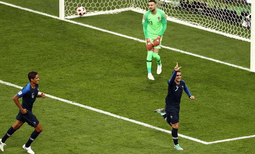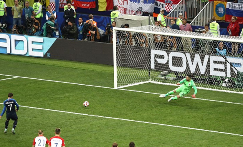 وسجل الهدف الثاني جريزمان عن طريق ركلة جزاء نجح في تنفيذها بعد تطبيق "حكم الفيديو" لاول مرة في نهائي كاس العالم