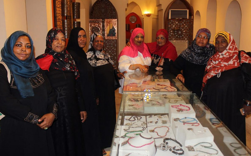 يشارك في ورشة الحلي عدد من السيدات العاملات في مجال الحرف التراثية من محافظة اسوان لإكسابهن تقنيات جديدة في مجال تصميم الحرف والخامات المستخدمة