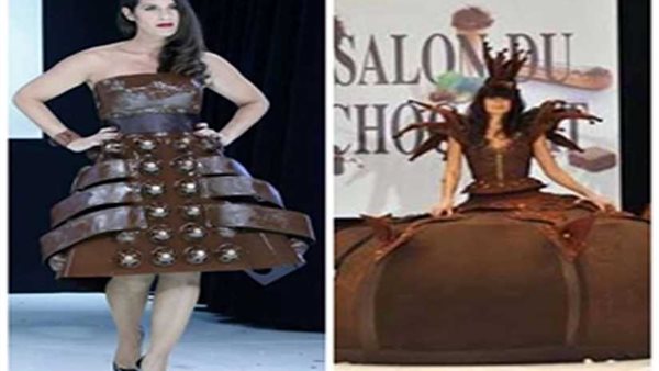 وفى أكتوبر الماضى، انطلقت فعاليات صالون "دو شيكولا" فى باريس، الذى شهد ارتداء بعض الفتيات ملابس مصنوعة من الشيكولاتة والحلويات، خاصة أن هذا الصالون كان بمشاركة أفضل منتجى الشيكولاتة والحلويات من فرنسا ومختلف أنحاء العالم، وذلك كان بمناسبة الاحتفال بالنسخة الـ22 من معرض الشيكولاتة.