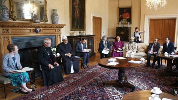 التقى الإمام الأكبر الدكتور أحمد الطيب، شيخ الأزهر، رئيس مجلس حكماء المسلمين، اليوم الأربعاء، في "قصر لامبث" مقر إقامته في لندن، أعضاء المنتدى الإسلامي المسيحي البريطاني، وذلك بحضور د.جاستن ويلبي، كبير أساقفة كانتربري.