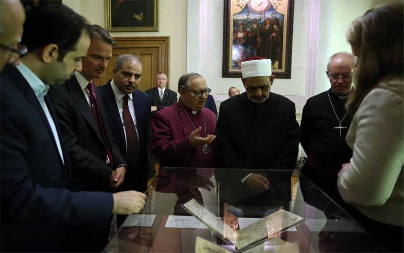 تفقد الإمام الأكبر الدكتور أحمد الطيب، شيخ الأزهر، رئيس مجلس حكماء المسلمين، اليوم الأربعاء، في "قصر لامبث" مقر إقامته في لندن، أقدم مخطوطة للقرآن الكريم في العالم، وهي من مقتنيات جامعة برمنجهام البريطانية.