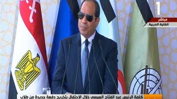 وإنني أجدد العهد معكم.. بأن تواصل الدولة بذل أقصى الجهد.. وبأفضل الأساليب والمناهج العلمية.. ليس فقط لتشييد المشروعات التنموية الكبرى ذات العائد الملموس.. ولكن قبل ذلك لبناء إنسان مصري يتمتع بصحة طيبة.. وتعليم حديث.. وثقافة راقية.. إنسانٌ يستطيع مواجهة تحديات هذا العصر وما يليه.. ويستطيع من خلال المخزون الحضاري العميق للشعب المصري.. تحقيق المعجزات في أقل وقت ممكن.. ولعله لا يوجد أفضل من هذا اليوم.. الذي نشهد فيه تخريج شباب مصري واعد من الكليات العسكرية.. وانضمامه للقوات المسلحة.. ليواصلوا مسيرة عطاء هذه المؤسسة الوطنية العريقة.. لأؤكد ثقتي في قدرتنا جميعاً بإذن الله.. على تغيير واقع الحياة في هذا الوطن لما نرضاه ونفخر به.. ليكون حاضر ومستقبل مصر.. بعظمة ومجد ماضيها.