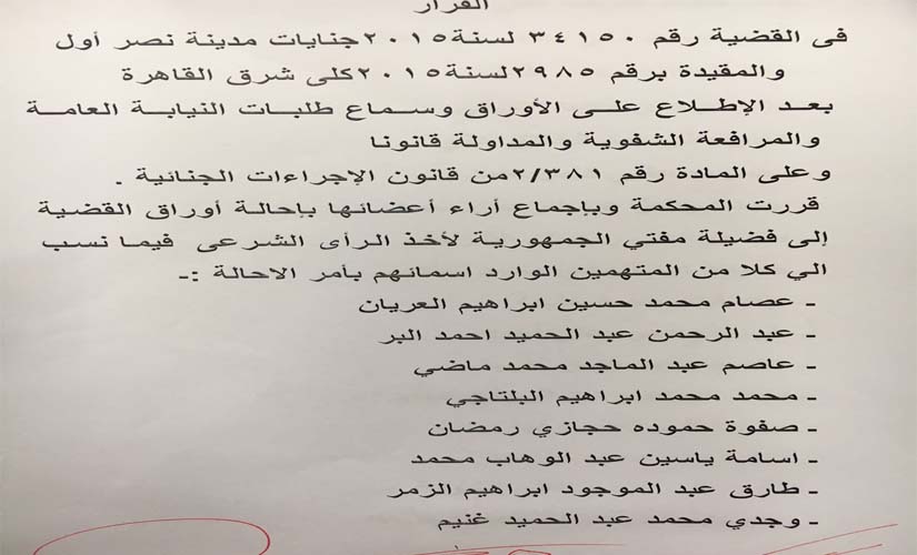 وتنشر "بوابة روزاليوسف" قائمة المتهمين الذين تم احالة أوراقهم للمفتى :