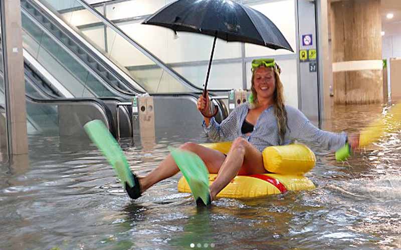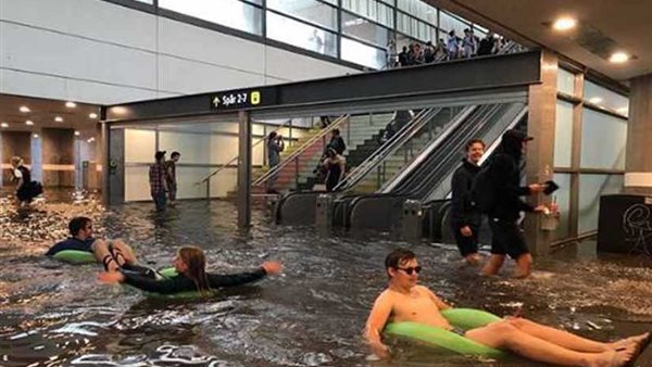 وبحسب موقع "بيزنس إنسايدر"، في الوقت الذي انهمك فيه مسؤولو خدمات الطوارئ في معالجة الوضع، فضل المسافرون اللعب والاستمتاع بمياه الأمطار المتجمعة.