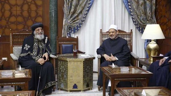 من جانبه أعرب الإمام الأكبر عن خالص شكره وتقديره لقداسة البابا تواضروس والوفد المرافق له، مؤكدًا أن وحدة المصريين وتماسكهم قدم نموذجًا مصريًّا عالميًّا للتعايش الاجتماعي على أساس المواطنة المشتركة.