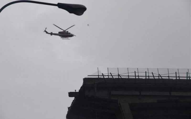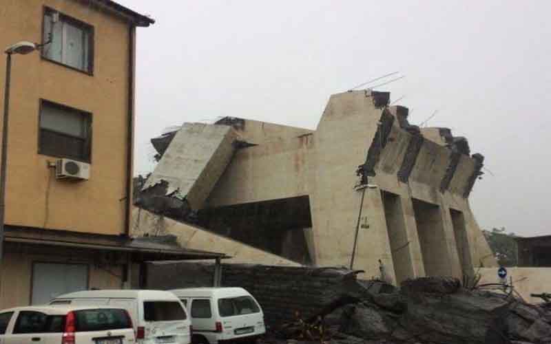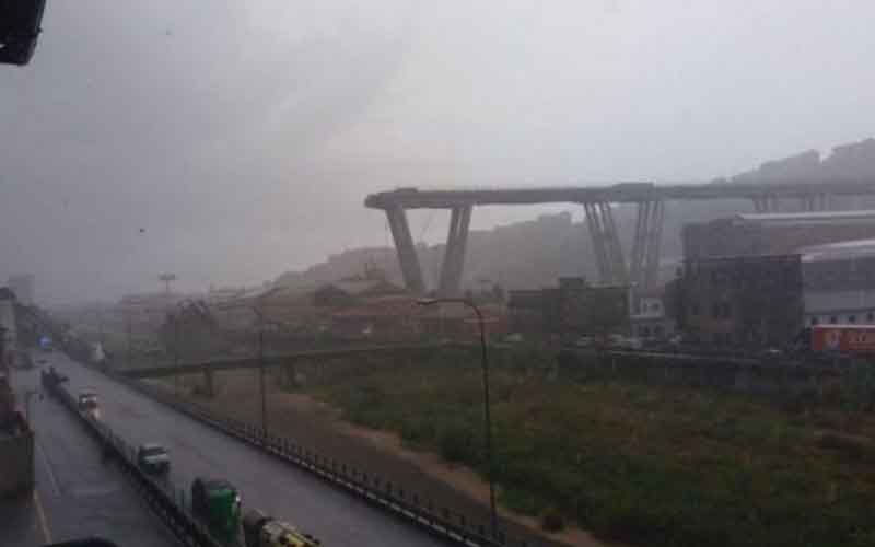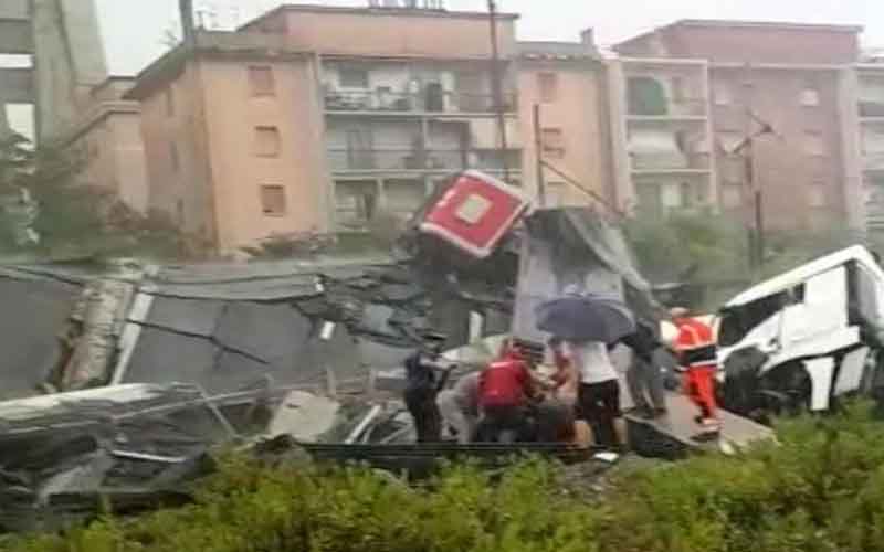 وهرع على الفور رجال الشرطة والإطفاء سيارات الإسعاف إلى موقع الحادث بالقرب من جنوة، حيث انهارت مسافة 650 مترًا من الكوبري.
