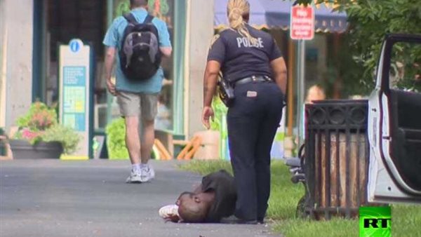 وعرضت فضائية "روسيا اليوم"، لقطات من وجود أشخاص على الأرض، وتعامل الشرطة الأمريكية معهم.