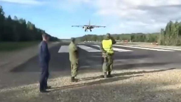 انتشر على مواقع التواصل الاجتماعي فيديو يظهر تنفيذ مقاتلة حربية روسية وقاذفة هبوط على طريق سريع في مقاطعة "خبارفسك".