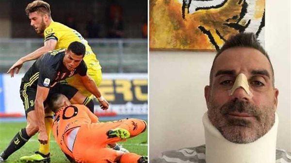 وتعرض الحارس لكسر في الأنف وإصابة في الكتف بعد حادث اصطدام مع رونالدو في آخر دقائق المباراة الافتتاحية للدوري الإيطالي التي فاز فيها اليوفي 3-0.