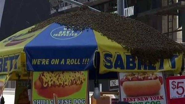 تفاجأ المارة في ميدان تايمز سكوير الشهير في مدينة نيويورك الأميركية بعدد هائل من النحل يغزو المنطقة، ويستهدف كشك لبيع شطائر الـ "هوت دوج".