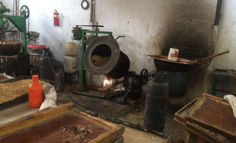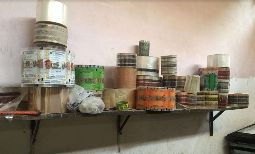 وبإجراء التحريات تبين صحة ما ورد من معلومات، تم استهدافه بمأمورية أسفرت عن ضبطه ، وعثر بداخل المصنع على 7.615 طن سلع غذائية « سكر ، زيت طعام، جلوكوز، سمسم، فول سوداني، عسل أسود، زبيب ، كامينا ، حلوي ، سميد » مجهولة المصدر.