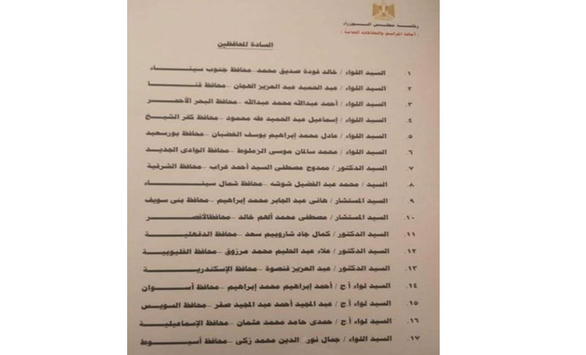 أخبار ننشر أسماء المحافظين الجدد قبل إعلانها رسميا ننشر أسماء المحافظين الجدد قبل إعلانها رسميا الخميس 30/أغسطس/2018 - 12:00 م 8/30/2018 12:00:00 PM كتب - وسام محمد كتب - سمر سيد تنشر بوابة روزاليوسف أسماء المحافظين الجدد، المنتظر أداؤهم اليمين الدستورية أمام الرئيس عبد الفتاح السيسي، بعد قليل اليوم بقصر الاتحادية. # الرئيس عبدالفتاح السيسي # المحافظين # اسماء المحافظين # المحافظين الجدد