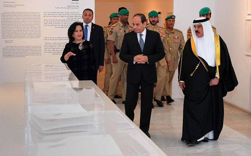 قام الملك حمد بن عيسى آل خليفة ملك البحرين والرئيس عبدالفتاح السيسي بزيارة إلى متحف البحرين الوطني، حيث كان في مقدمة مستقبليهما الشيخة مي بنت محمد آل خليفة رئيسة هيئة البحرين للثقافة والآثار وكبار المسؤولين بالهيئة.