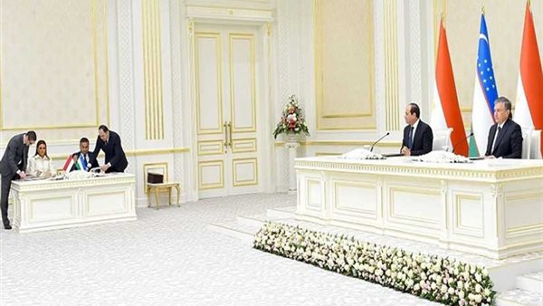 وصرح السفير بسام راضى المتحدث باسم رئاسة الجمهورية، ان الرئيس عبد الفتاح السيسى ونظيره الأوزبكى شهدا مراسم التوقيع على عدد من الاتفاقيات ومذكرات التفاهم المشتركة بين الجانبين بشأن تعزيز التعاون بين وزارتى خارجية البلدين، والتعاون في مجالات العلاقات الاستثمارية الثنائية، والرياضة، والزراعة، والعدل، والسياحة، والشباب، والآثار والتراث الثقافى والمتاحف، التعليم العالى، ومنع الازدواج الضريبى والتهرب الضريبى.
