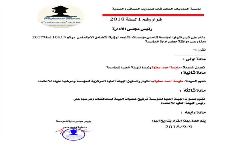 مايسة عطوة رئيسا لمؤسسة التدريب النسائي