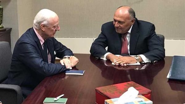 وزير الخارجية يلتقي المبعوث الأممي لسوريا بمقر بعثة مصر لدى الأمم المتحدة