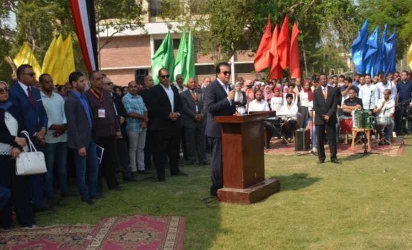 جاء ذلك خلال مشاركة وزير التعليم العالي في مراسم تحية العلم بجامعة أسيوط والمنعقدة تزامنًا مع أول أيام العام الدراسي الجديد والمتضمنة الإعلان عن الكليات الفائزة في مسابقة الكلية الأفضل وذلك بحضور الدكتور طارق الجمال رئيس الجامعة، والدكتور شحاتة غريب نائب رئيس الجامعة لشئون التعليم والطلاب والمشرف على قطاع خدمة المجتمع وتنمية البيئة ولفيف من عمداء الكليات وأعضاء هيئة التدريس وحشد كبير من الطلاب .