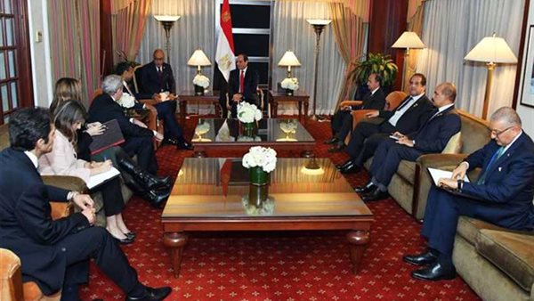 استقبل الرئيس عبد الفتاح السيسي مساء اليوم بمقر إقامة بنيويورك مارك ألين رئيس شركة "بوينج" العالمية.