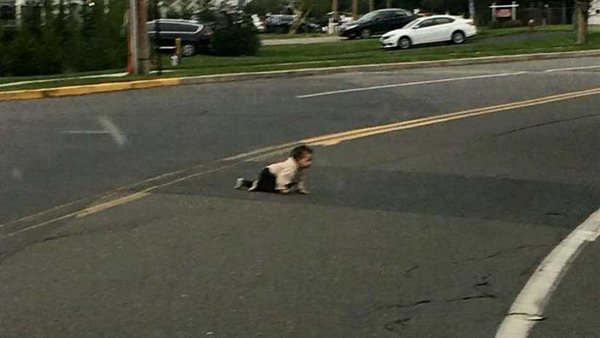 طفل 10 أشهر يهرب إلى الطريق السريع.. شاهد ماذا حدث؟ (صور)