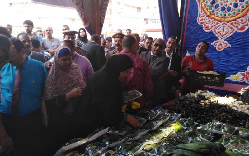 واشاد اللواء حسونة بجودة المعروضات من الخضار والفاكهة وبسعرها الذي يقل عن النصف لمثيلاتها بالسوق