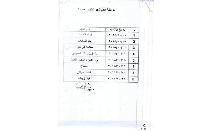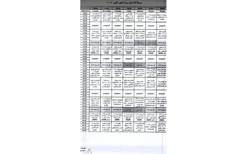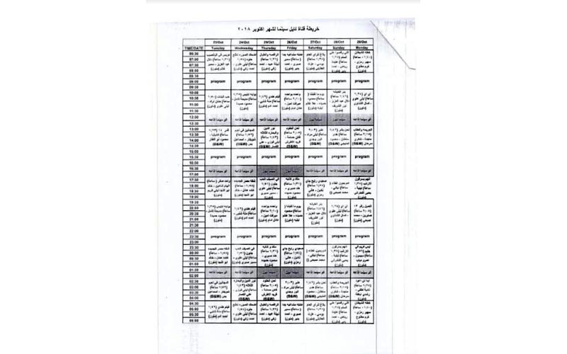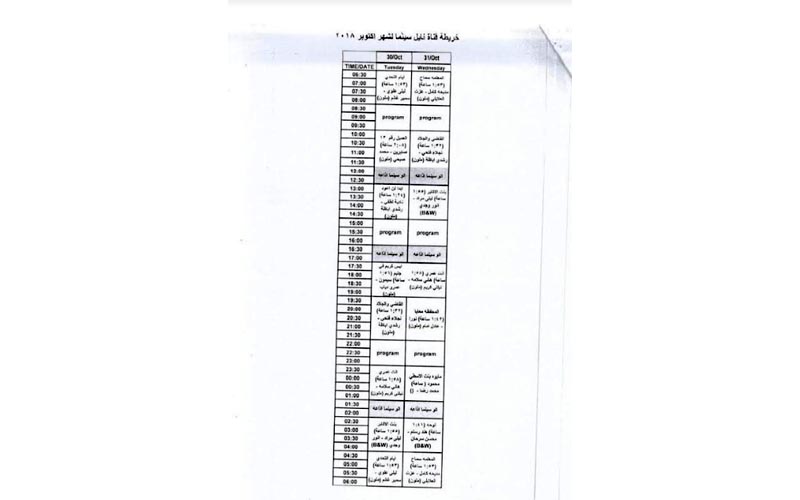 قام قطاع القنوات المتخصصة بوضع خريطته البرامجية لشهر أكتوبر لقنوات سينما ولايف وكوميدي والعائلة والثقافية والدراما، وتنوعت بين التوك شو اليومي والمسرحيات والأفلام الأجنبية والعربية والمسلسلات الدرامية والسهرات الغنائية.