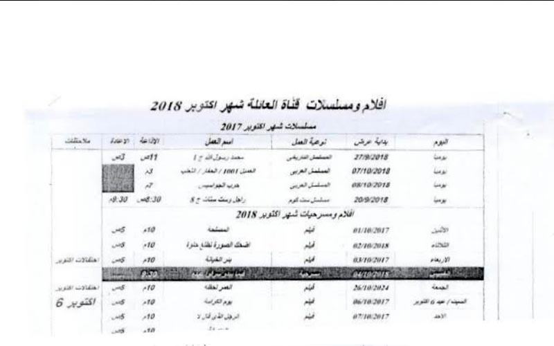 ننشر خريطة القنوات المتخصصة لشهر أكتوبر