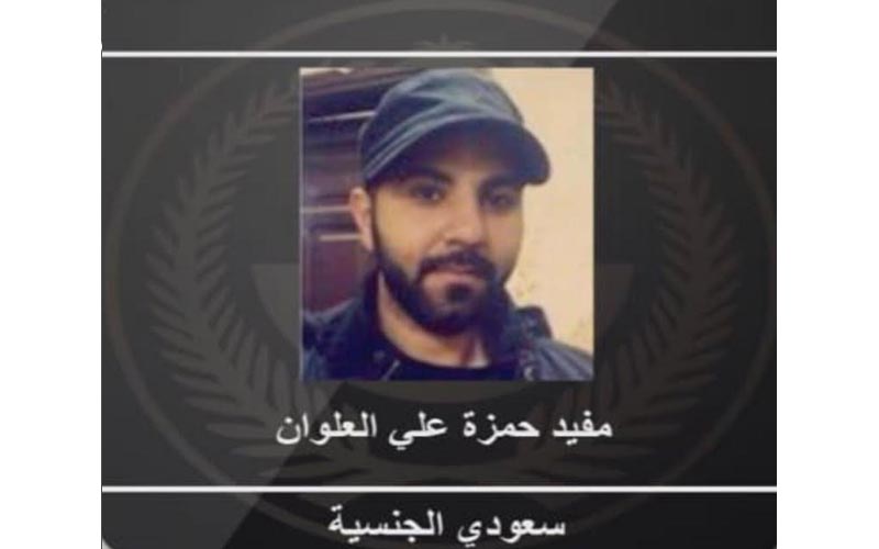 2 ـ المطلوب أمنياً مفيد حمزة علي العلوان (سعودي الجنسية)، المعلن عنه ضمن قائمة المطلوبين الأمنيين.