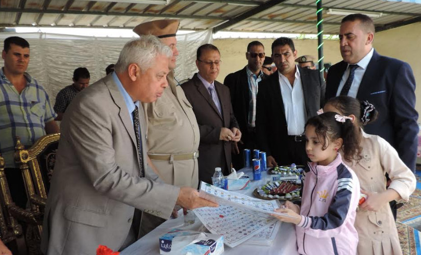 وقدم اللواء جمال الرشيدي بعض الهدايا للطلبة ولاقت هذه المبادرة استحسان الطلبة مرددين تحيا مصر.