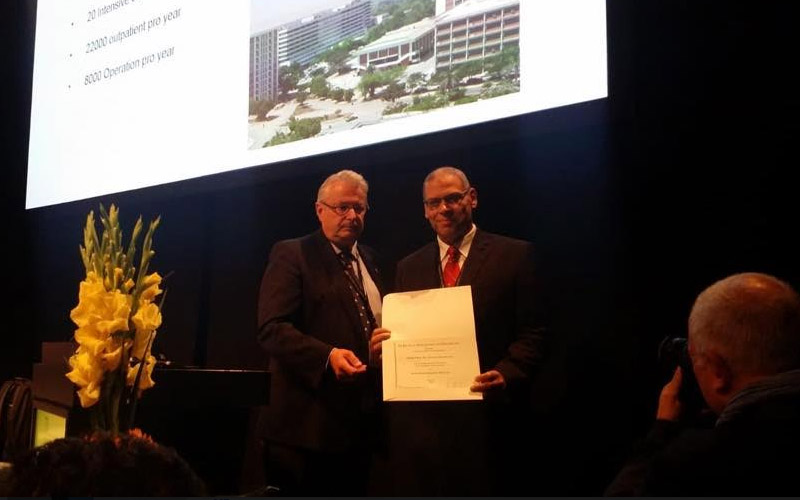 أعلنت الجمعية الألمانية للمسالك البولية فى مؤتمرها السبعون عن منح الدكتور هشام مختار حمودة رئيس قسم ومدير مستشفى جراحة المسالك والكلى بجامعة أسيوط العضوية الفخرية للجمعية وذلك تكريماً لعطائه المتميز فى مجال زراعة الكلى.