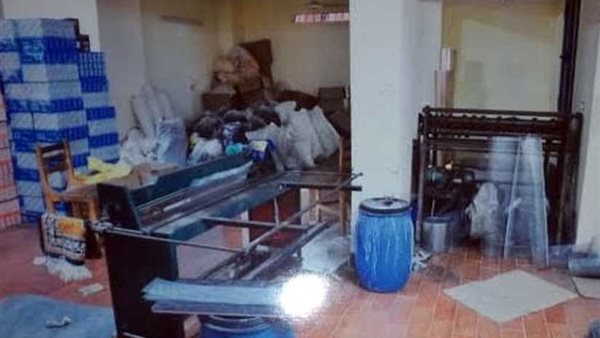 كما تم ضبط 6 لفات شبك سلك، ومنضدتين حديدية، و82 كرتونة معدة للتعبئة، و4 برميل بداخلهم مادة غراء، و17 برميل فارغ مجهولين المصدر.