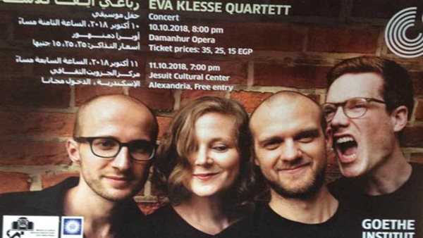 تستضيف دار الأوبرا المصرية رباعي إيفا كلاسة الألماني في الساعة الثامنة مساء يوم الأربعاء 10 أكتوبر، لإحياء حفل فني على مسرح أوبرا دمنهور.